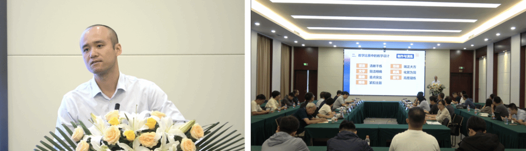 在本次交流活动中,第四届全国青年教师教学竞赛工科组一等奖获得者,清华大学的李威副教授首先以“浅谈教学比赛中的教学设计”为题做了精彩的报告。在报告中李威老师从教学比赛的特点以及教学设计两方面进行了详细的经验交流。李威老师强调,教学比赛不仅是比赛,更是教学学术提升的抓手和交流平台。同时,在教学比赛设计中要重视教育教学理念,并要在授课过程中深入落实教学理念。其次,教学比赛中要“讲透一个知识点”,构思主线要明确“一波三折”,制作演练需要“精益求精”。