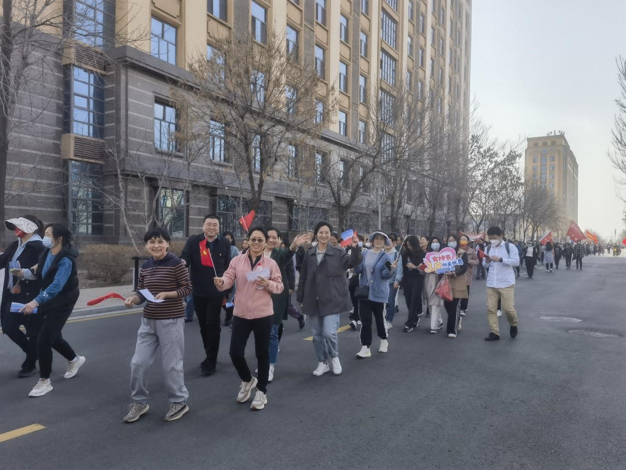 为庆祝第113个“三八”国际妇女节,3月7日下午,学校在明向校区开展了以“礼赞党的二十大 踔厉启新程”为主题的女教职工环校健步走活动。