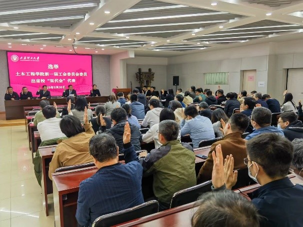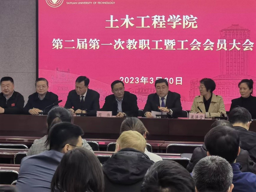 大会在激昂的国歌声中拉开序幕。董晓强作题为《凝聚力量、锚定方向、埋头苦干,为学校“双一流”建设挺膺担当》的行政工作报告,回顾了学院在教学科研、学科建设、人才培养、师资队伍建设、行政管理等方面的工作内容,分析了学院发展面临的机遇和挑战,并对2023年重点工作进行了安排部署。他指出,近年来,学院一如既往稳步发展,各项工作取得了可喜成绩。他要求,学院将在习近平新时代中国特色社会主义思想的指引下,对标一流,凝聚合力,加强内涵建设,锚定高质量发展,再铸土木学院新的辉煌。院工会主席贺武斌代表一届工会委员会作工会工作报告,他表示本届工会是学院成立以来第一届工会委员会,院工会在院党委和校工会的正确领导下,在全体工会委员和小组长的共同努力下,紧紧围绕学院中心工作,不断提高教师教学水平,坚持维护教职工权益,做好维权帮扶工作,加强工会的组织建设和师德师风建设,为学院发展做出了积极贡献。