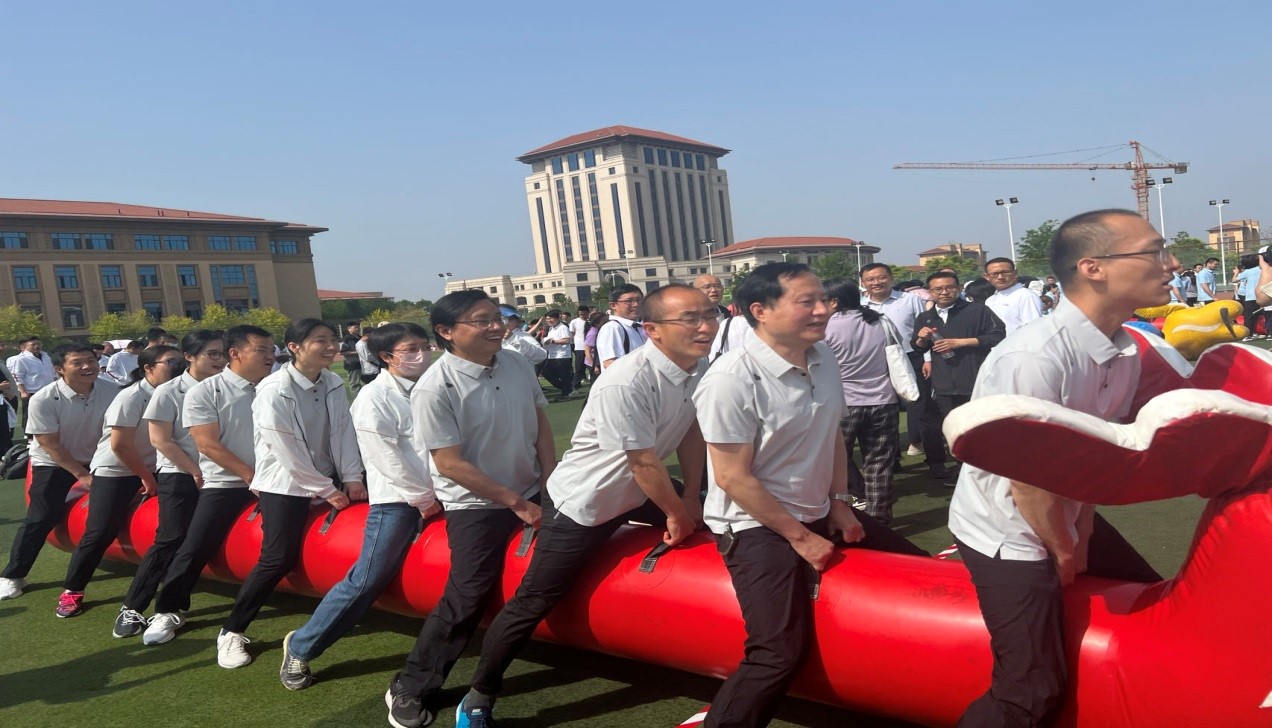 我院教职工在校2023年运动会上“旱地龙舟”项目首战告捷