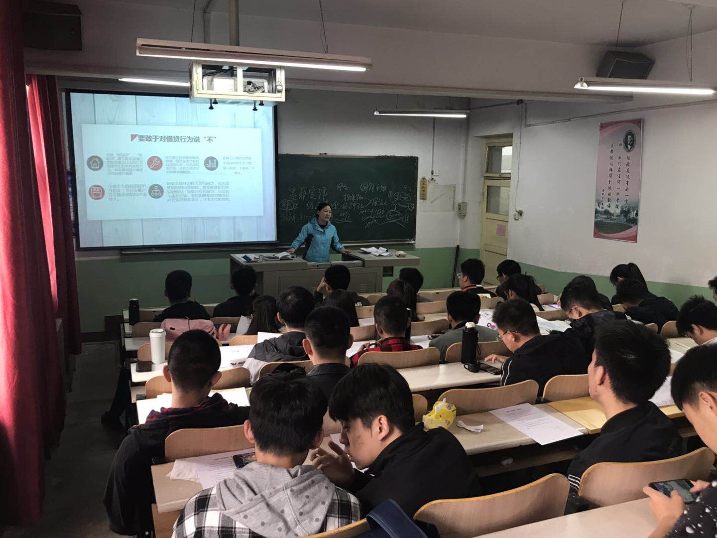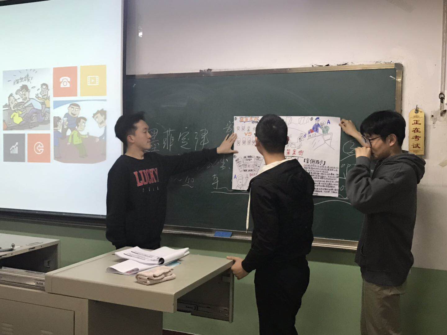 班会伊始,仇韶荣对班级进行了小组划分,并给每个小组发放了一张生动形象的典型案例手抄报。同学们就手抄报案例反映的校园问题,从身边案例到解决方法再到如何防患于未然等方面进行了深入讨论。班会上,小组代表分别就讨论的案例在讲台上分享了经验,仇韶荣就同学们的提问、分享,结合PPT进行了补充说明;针对校园贷、考试违纪、网络暴力、大学生交友、学习压力、学生打架、严重心理问题等七类严重影响学生身心健康的问题进行了深度分析;对“五个一”进行了条理详尽地阐述,让同学们加深了对此次主题班会的印象。