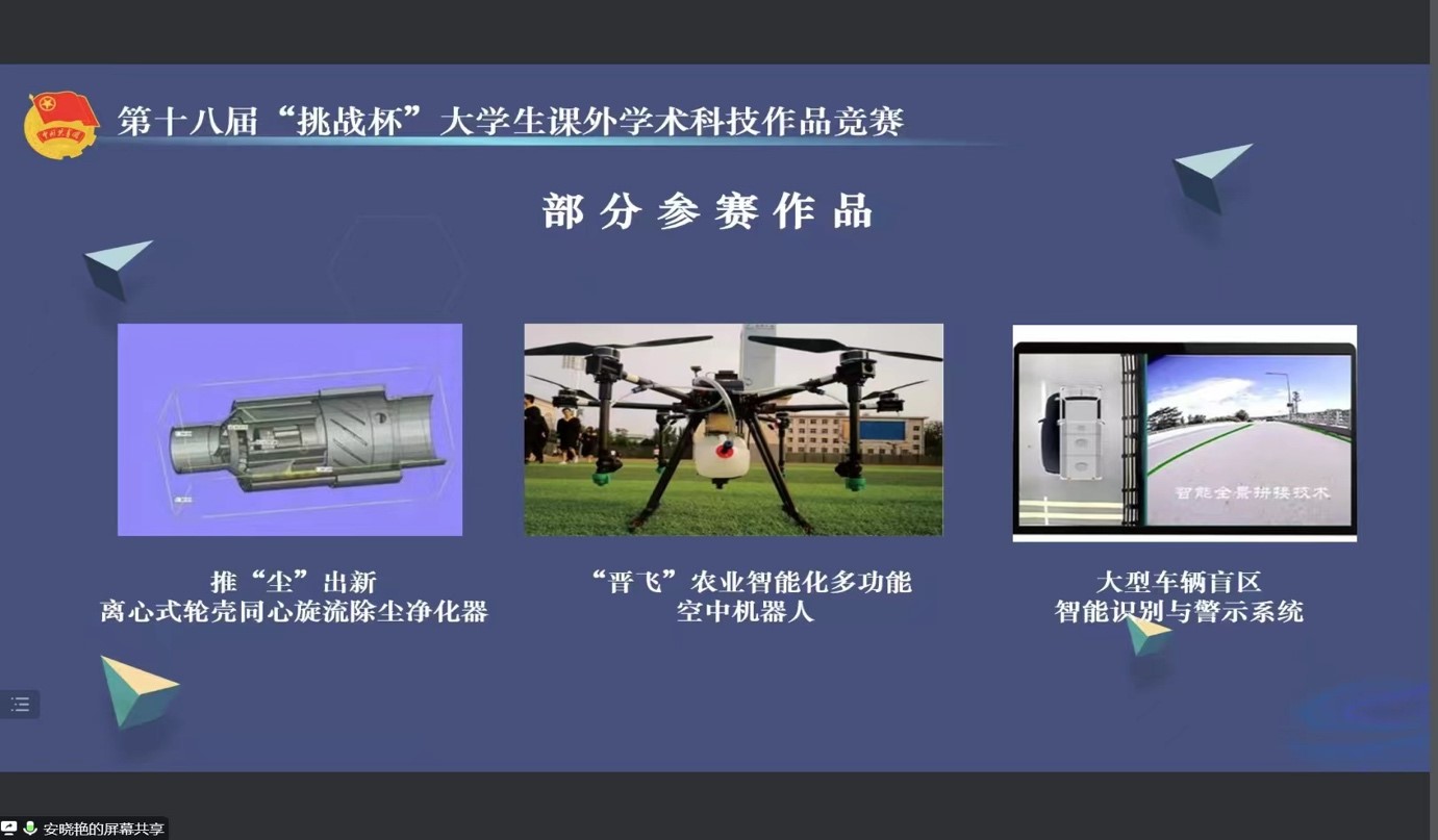 挑战筑梦青春,创新成就未来。日前,第十八届“挑战杯”大学生课外学术科技作品竞赛正在如火如荼进行,为帮助学生发散思维、拓展思路,准确理解比赛要求,有的放矢打造作品,3月13日,我院举办“挑战杯”分享交流会,邀请校团委科技实践部部长、“挑战杯”竞赛负责人安晓艳老师主讲,围绕赛事要点分享经验,答疑释惑,宣讲指导。