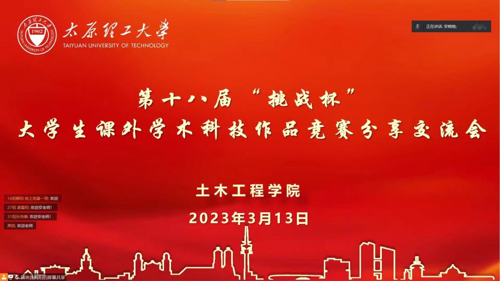 分享交流会上,安老师详细阐明了“挑战杯”申报材料的撰写要求,通过获奖案例概括总结了优秀作品的亮点与特征,根据土木学院作品特点提出了修改建议和方向,观点高屋建瓴、讲解权威细致、分析鞭辟入里。随后,同学们就备赛过程中遇到的难题积极提问、踊跃互动,安老师逐一耐心解答,参会学生收获颇丰。