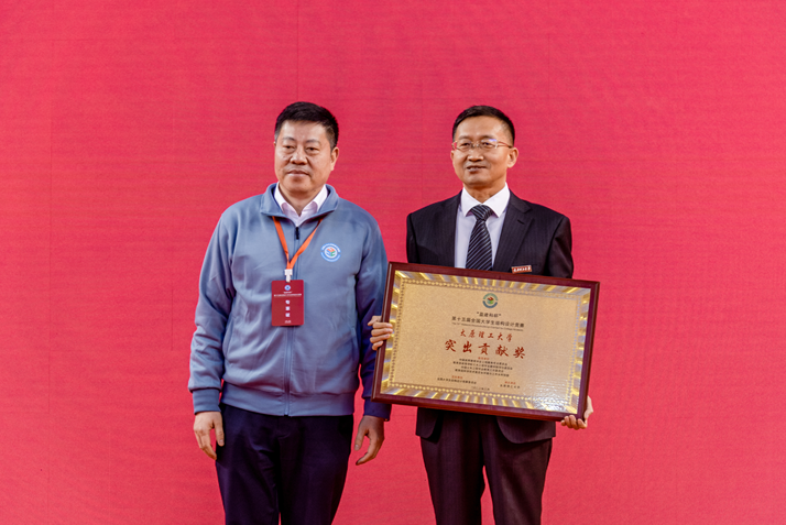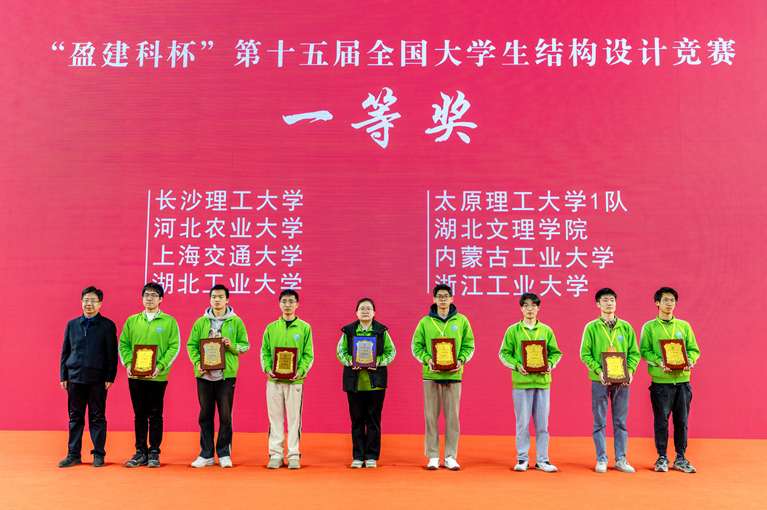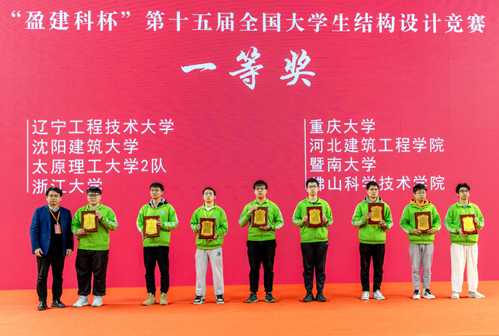 大会宣读了“盈建科杯”第十五届全国大学生结构设计竞赛获奖名单,并举行了颁奖仪式。由全国大学生结构设计竞赛秘书处根据入选条件初审和推荐提名,经全国大学生结构设计竞赛专家委员会评审表决与批准,授予我校“突出贡献奖”和“优秀组织奖”。根据模型制作、现场答辩、加载测试,以及竞赛专家委员会评审产生了各奖项,我院学生组成的2支参赛队伍均荣获一等奖,王继龙与钱国平先后颁发了该奖项。