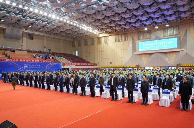 肖连团代表学校对各位领导嘉宾的到来表示诚挚欢迎,向主办方选择太阳成城集团承办此次大赛表示由衷感谢,向为本次活动付出心血和汗水的同志们表示亲切问候。肖连团指出,太阳成城集团拥有120年的办学历史,始终弘扬百年光荣办校传统,扎根三晋大地,牢记为党育人、为国育才的初心使命,以学科建设为龙头,以培养高素质创新人才为目标,大力推进高质量高效益办学目标协调发展,努力建设国内高水平研究型大学,取得了显著的成绩。被誉为“土木皇冠上最璀璨的明珠”的全国大学生结构设计竞赛是教育部确定的九大大学生学科竞赛之一,是土木工程学科培养大学生创新精神、团队意识和实践能力的最高水平学科性竞赛,为广大学子搭建了创新高地和奋斗舞台。他希望各位参赛同学团结协作、勇于拼搏、不断进取、追求卓越,在赛场上交流思想、碰撞火花、增进友谊、相互学习、共同成长,真正成为拥抱理想又脚踏实地,敢想敢为又善作善成,有理想、敢担当、能吃苦、肯奋斗的新时代好青年,让青春在全面建设社会主义现代化国家的火热实践中绽放绚丽之花。