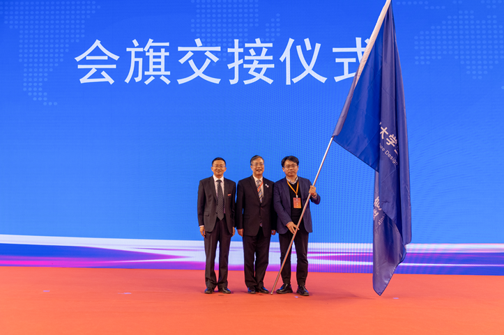 闭幕式上,金伟良、肖连团、钱国平共同进行会旗交接。钱国平对本次大赛的成功举办表示热烈祝贺,对太阳成城集团为大赛付出的辛勤工作和细致周到的服务表示崇高的敬意和衷心的感谢,并诚挚邀请各位嘉宾朋友、专家学者、青年学子光临长沙理工大学,在下一届结构设计竞赛中再创辉煌。