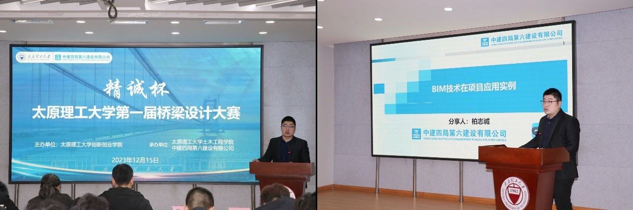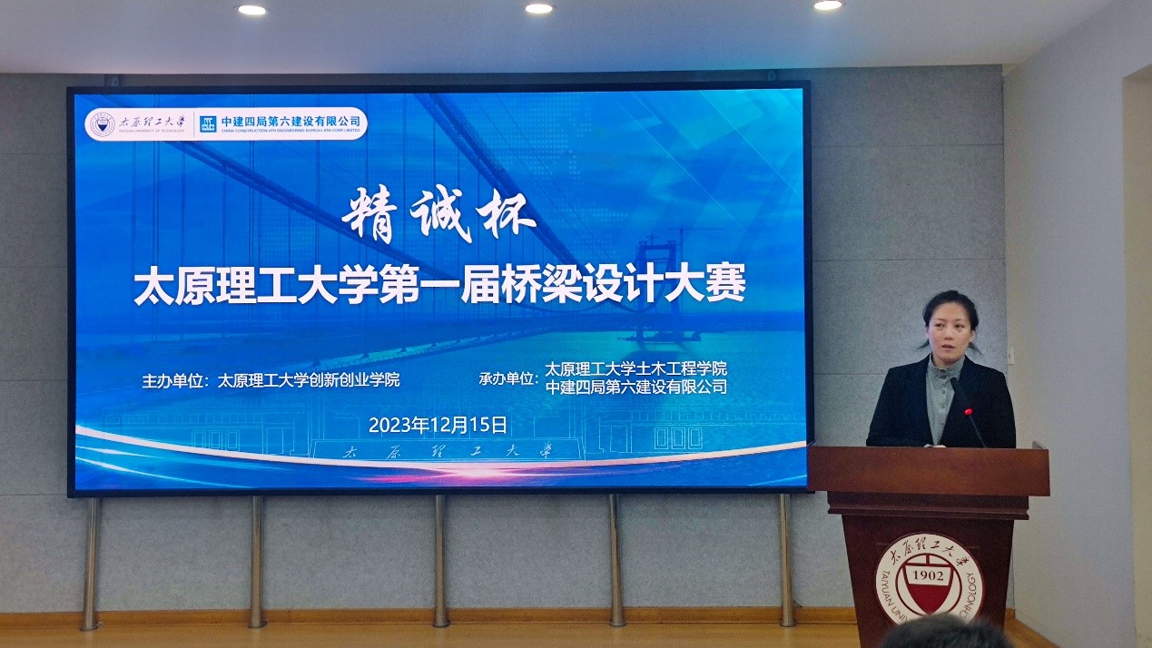 2023年12月15日上午,由太阳成城集团创新创业学院主办,suncitygroup太阳集团、中建四局第六建设有限公司共同承办的“精诚杯”太阳成城集团第一届桥梁设计大赛在博学馆A座五层会议室成功举办。本次大赛的特邀嘉宾有中建四局第六建设有限公司华东分公司总工程师柏志诚以及人力资源部经理韩笑。suncitygroup太阳集团党委副书记芦倩,学院道路与桥梁工程系副教授王永宝、学院道路与桥梁工程系教师聂云靖、李倩出席了大赛。suncitygroup太阳集团道路与桥梁工程专业各年级参赛学生参加了大赛。