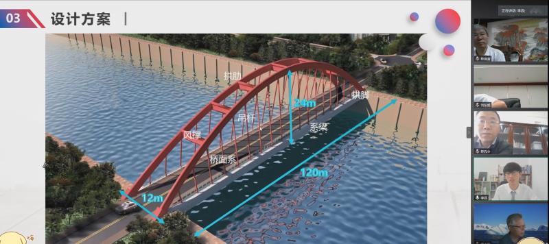 经过初审,共计18项作品围绕最佳设计奖、最佳创意奖、最佳协作奖与最佳风采奖等四个奖项展开激烈的角逐。其中,最佳设计奖共10组(特等奖1组,一等奖2组、二等奖3组、三等奖4组)、最佳创意奖3组、最佳协作奖3组、最佳风采奖1组。经过一天紧张的线上决赛答辩,我校学子设计的《凝心桥》作品荣获最佳设计三等奖和最佳风采奖。