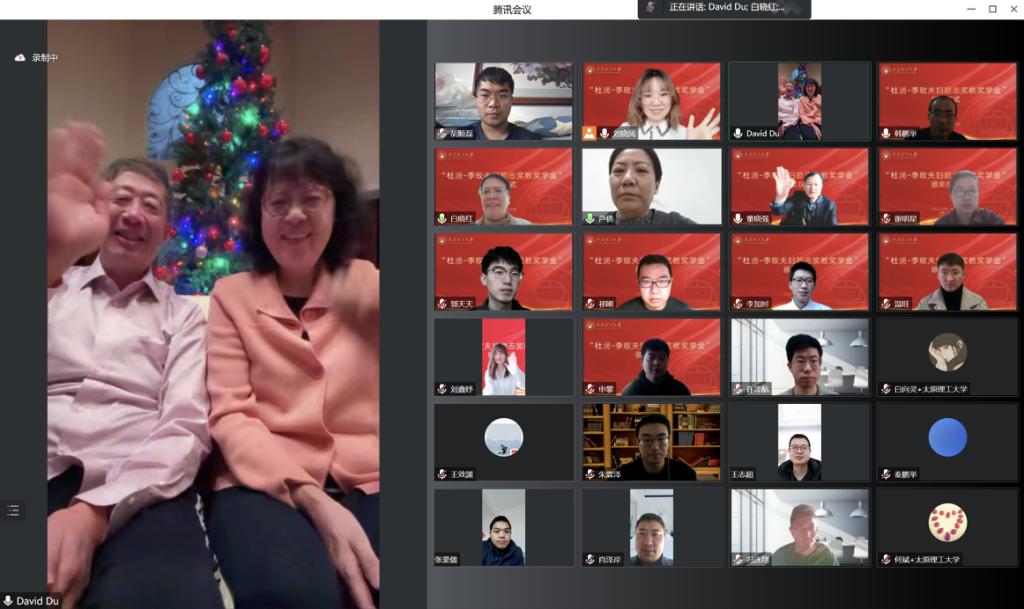2023年1月3日上午,腾讯会议线上举行了2022年“杜湧-李玫夫妇励志奖教奖学金”颁奖仪式,此次颁奖仪式由学院党委副书记芦倩主持,岩土与地下工程研究所师生和杜湧-李玫夫妇参加了颁奖仪式。