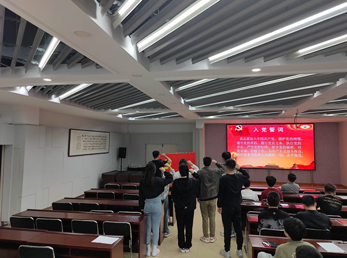 欢送会上,毕业生党员在党支部书记师希望同志的带领下面向党旗,重温了入党誓词。本年度毕业的研究生党员大部分于2021年入党,当举起右拳的那一刻,大家仿佛又回到了在建党百年之际光荣加入中国共产党这一激动人心的时刻,鲜红的党旗在众人的铿铿誓言中显得更加明艳。