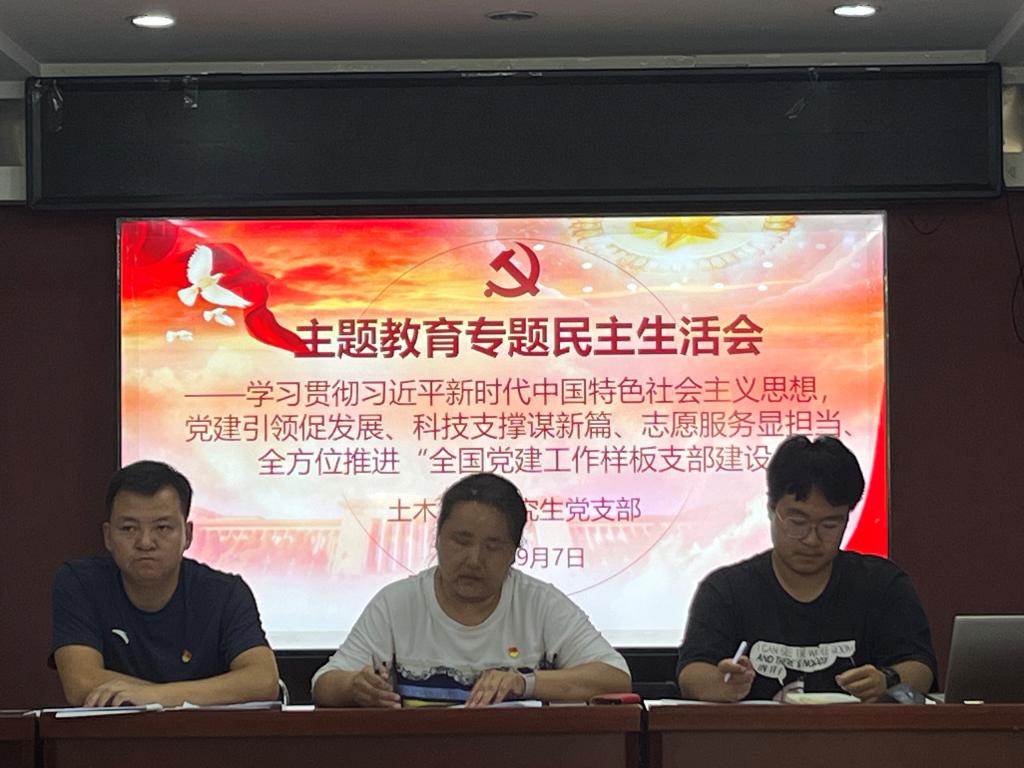 按照校党委和院党委的统一安排,根据中共太阳成城集团委员会《关于在学习贯彻习近平新时代中国特色社会主义思想主题教育中开好专题民主生活会的通知》要求,9月7日下午,土木第三研究生党支部召开以“学习贯彻习近平新时代中国特色社会主义思想,党建引领促发展、科技支撑谋新篇、志愿服务显担当、全方位推进‘全国党建工作样板支部’建设”的专题民主生活会。会议由支部书记何斌主持,支部副书记马富丽及全体党员同志参加。