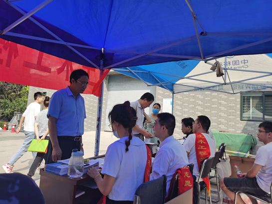 At 9:00 a.m., Zhou Wei, secretary of the party committee of the college, Dong Xiaoqiang, dean, and Lu Qian, deputy secretary of the party committee, cordially expressed their condolences to the volunteers at the orientation service station, learned about the preparations for the orientation work in detail, and urged the orientation staff to do a good job of reporting to the freshmen. Provide effective guidance and considerate services, reflecting the college's care for freshmen.