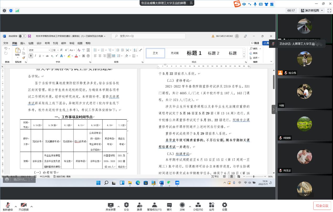 为切实做好疫情防控期间期末教学工作,基础部于2022年5月11日举行了本学期期末教学工作会议。会议以视频方式线上举行,由土木学院基础部主任王蕊教授主持,基础部全体教师参加了本次会议。