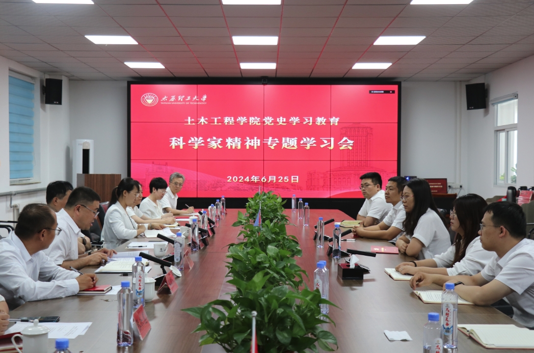 6月25日,我院在山西路桥青银二广高速公路太原联络线有限公司四楼会议室召开党史学习教育科学家精神专题学习会,组织部副部长谢鹏华受邀出席会议,研究生院院长、我院院长董晓强,我院党委副书记芦倩出席会议。学院各部门负责人,系部中心主任,党支部书记参加会议。院党委书记武佐君主持会议并讲话。