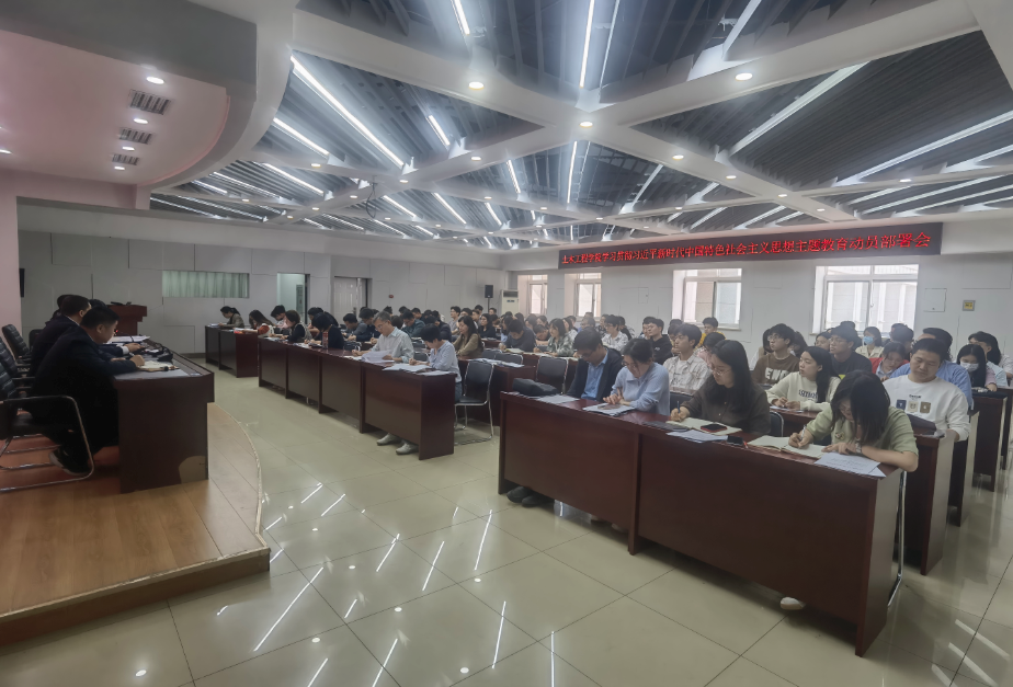 4月19日下午,我院在五层会议室召开学习贯彻习近平新时代中国特色社会主义思想主题教育动员部署会,班子成员、三办一委负责人、系(部)中心主任、党支部书记、党员代表参会。动员会由院长董晓强主持。