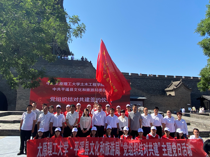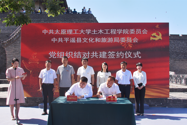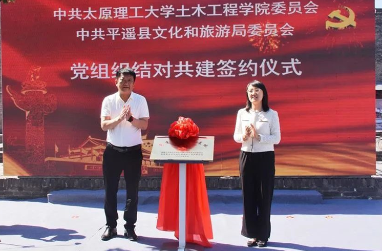 为深入贯彻落实党的二十大精神和习近平总书记考察调研平遥古城重要指示精神,不断创新基层党建工作载体,提高基层党建工作水平,推动党建工作与业务工作深度融合、互相促进,在2023年6月10日文化和自然遗产日之际,我院党委赴平遥举办中共suncitygroup太阳集团委员会与中共平遥县文化和旅游局委员会党组织结对共建仪式。校党委组织部副部长谢鹏华、学院党委书记武佐君、科研院副院长李飞、学院工会主席刘元珍,晋中市文旅局副局长何斌(挂职),平遥县委常委、组织部长程建明、县政府副县长张旭峰、县文旅局局长郭效云等领导和同志们参加了结对共建仪式。