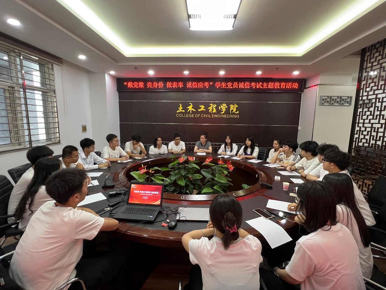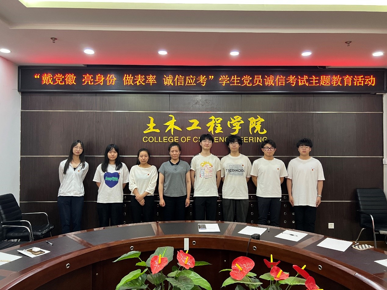 为推动主题教育深入开展,强化学生党员的先锋模范作用,展示学生党员形象,6月26日下午,我院在二层会议室举办“佩戴党员徽章 亮身份 做表率 诚信应考”学生党员诚信考试教育活动,部分后期有考试的党员代表参加。活动由院党委副书记芦倩主持。
