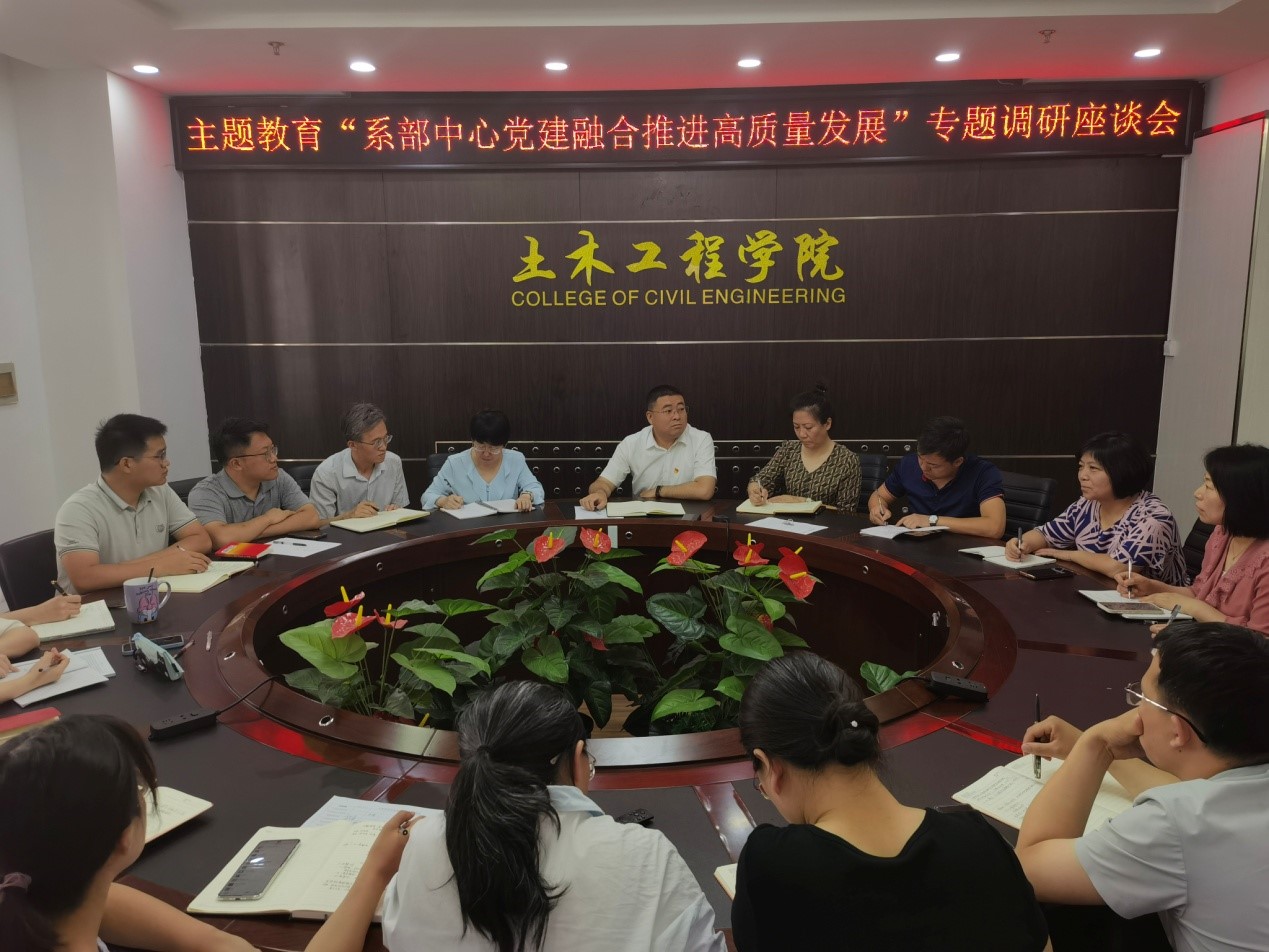 为进一步推动主题教育走深走实,6月27日,我院在二层会议室召开主题教育“系部中心党建融合推进高质量发展”专题调研座谈会,院党委书记武佐君主持,党委副书记芦倩、系(部)中心主任、党支部书记参加了会议。