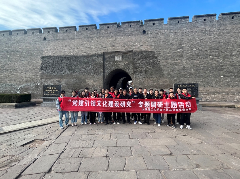 为全面贯彻落实党的二十大精神,深入学习习近平总书记关于文物工作重要论述和考察调研山西重要讲话重要指示精神,土木第三研究生党支部于2023年11月9日赴世界文化遗产平遥古城开展“党建引领文化建设研究”课题专题调研暨志愿服务活动。本次活动与平遥古城城墙服务中心、平遥古城文化遗产研究院联合举办,支部书记何斌、副书记马富丽出席,支部党员代表16人及相关课题组成员8人参加活动。