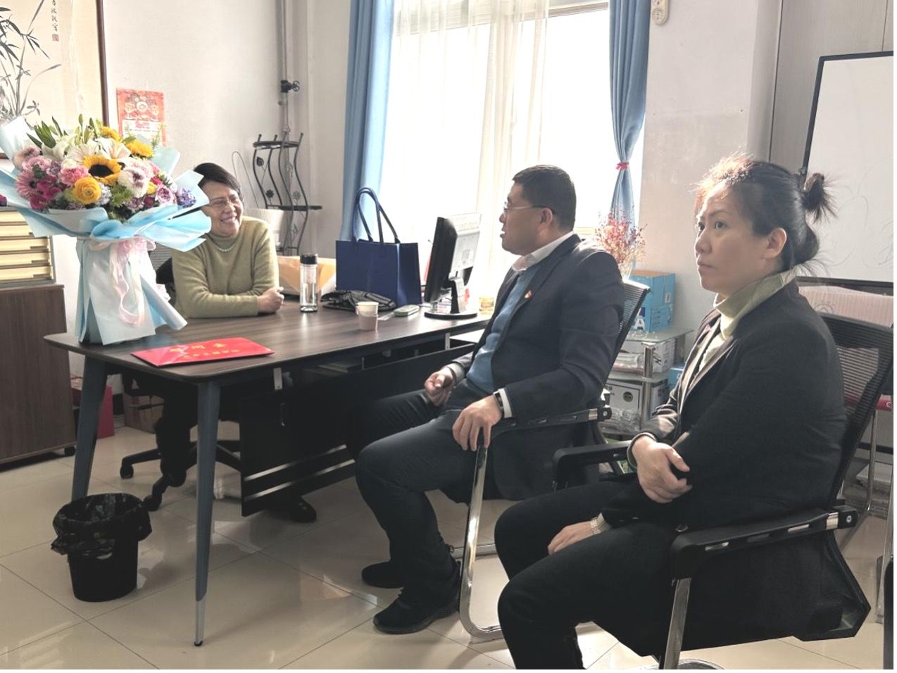 院党委书记武佐君、副书记芦倩带领相关人员看望了离退休的老领导、老党员白晓红同志。武佐君代表学院领导班子向白老师表示诚挚问候和衷心祝福,详细了解了白老师的生活和健康情况,通报了过去一年学院取得的成绩,征求了关于学院改革发展的意见和建议,感谢她为学院、学校和地方建设作出的贡献,希望白老师一如既往地关心支持学校、学院各项事业发展,为我校双一流建设、为学院高质量发展献计出力。