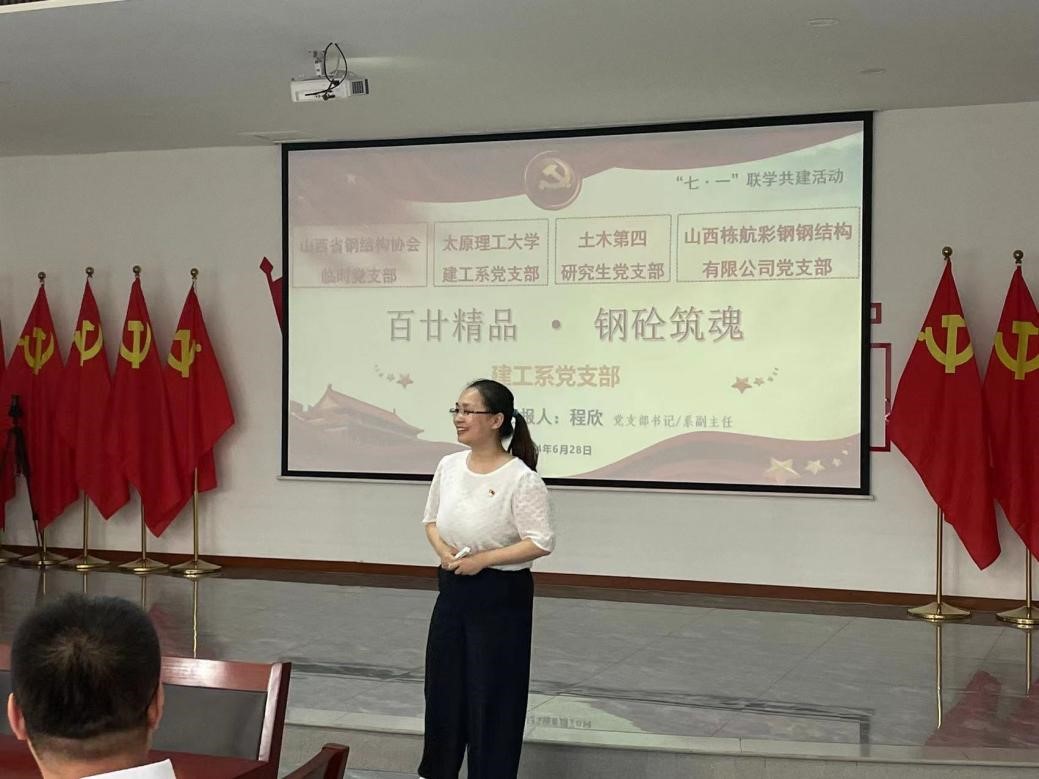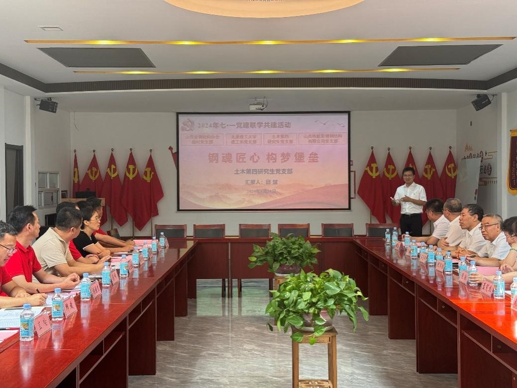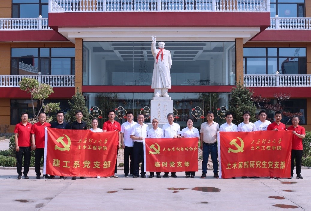 建工系党支部与土木第四研究生党支部赴山西栋航彩钢钢结构有限公司开展“七•一”党建共建活动