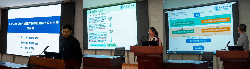 报告中,赵云川针对目前UHPC加固既有混凝土结构中存在材料体系、界面性能等研究瓶颈,从UHPC材料水化机理出发,系统开展了UHPC材料的组成优化及力学性能研究。周燕通过试验研究、数值模拟和理论分析,全面深入地对方钢管高强灌浆料新型组合异形柱的力学性能展开了研究分析,提出了该新型组合异形柱的轴压和偏压承载力计算方法。李显辉提出了易安装、耗能优的内充泡沫铝多腔防护构件,围绕此类构件的变形能力、耗能机制及截面优化设计等,采用试验研究和数值模拟的方法开展了系列研究工作。