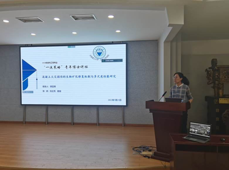 樊亚男的报告题目为《混凝土火灾损伤的生物矿化修复机制与多尺度性能研究》,针对混凝土火灾传统修复方法存在的问题,从绿色、可持续发展方面提出了生物矿化修复混凝土火灾损伤性能的机理及多尺度性能研究,为工程材料与生命科学的交叉探索提供了理论依据。白艳琴总工及李铁英教授指出研究内容具有前沿性,并对生物矿化的继续深入研究和工程应用给予期望。导师杜红秀教授对樊亚男四年的博士学习给予高度认可,表达了对樊亚男同学的殷切期望。