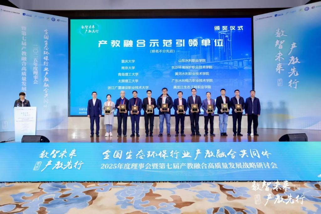 为积极对接行业发展人才培养需求新动态、进一步提高人才培养质量,贯彻学校以产教融合发展路线激发学科科研创新活力的发展方针,2025年3月25日至26日,给排水科学与工程系专业教师参加了在长沙举行的全国生态环保行业产教融合共同体2025年度理事会暨第七届产教融合高质量发展战略研讨会。会上,我专业教师代表我校参与了共同体2025年度理事会、产教融合高质量发展战略研讨会等系列活动,并代表我校领取了2025年度“产教融合引领示范奖”奖项。该奖项的获得,是对我校水务行业人才培养积极推进产教融合尝试举措的肯定。