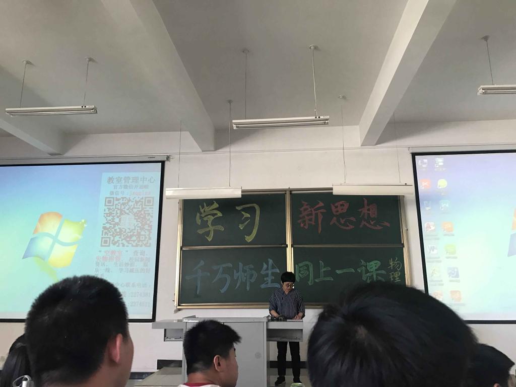 2018612日下午在综B阶教301物理系开展了“学习新思想,千万师生同上一堂课”讲座,参加本次讲座的有物理系党总支副书记王秀芬老师和16级、17级物理系全体学生,本次讲座分两次完成,主讲教师为思政系白兴星老师。