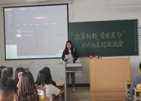 物理系学生党支部于5月7日下午两点四十在综A-410教室召开“改革创新,奋发有为”大讨论总结交流会。参加会议的有:学生党支部书记杨艳及在校党员、预备党员和发展对象。本次会议由分团委副书记贺斌主持,此次会议以观看视频为辅,交流总结为主的形式开展。