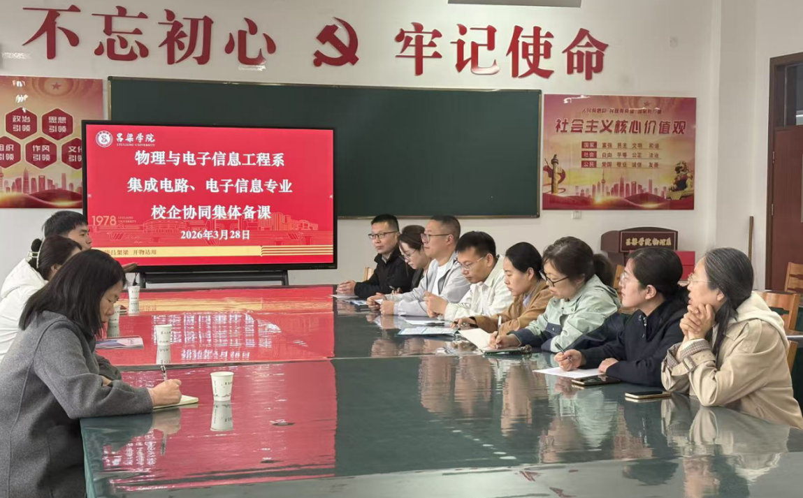 为深入推进产教融合,精准对接区域产业人才需求,切实提升应用型人才培养质量,3月28日上午10点,吕梁学院物理与电子信息工程系集成电路设计与集成系统、电子信息工程专业联合举办校企协同集体备课研讨交流活动。山西晋南钢铁集团、山西盛霖锐信科技有限公司负责人受邀参会,与系部骨干教师共同探讨人才培养与教学改革新思路。