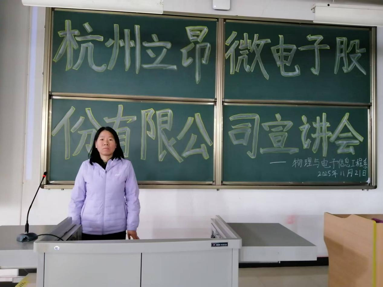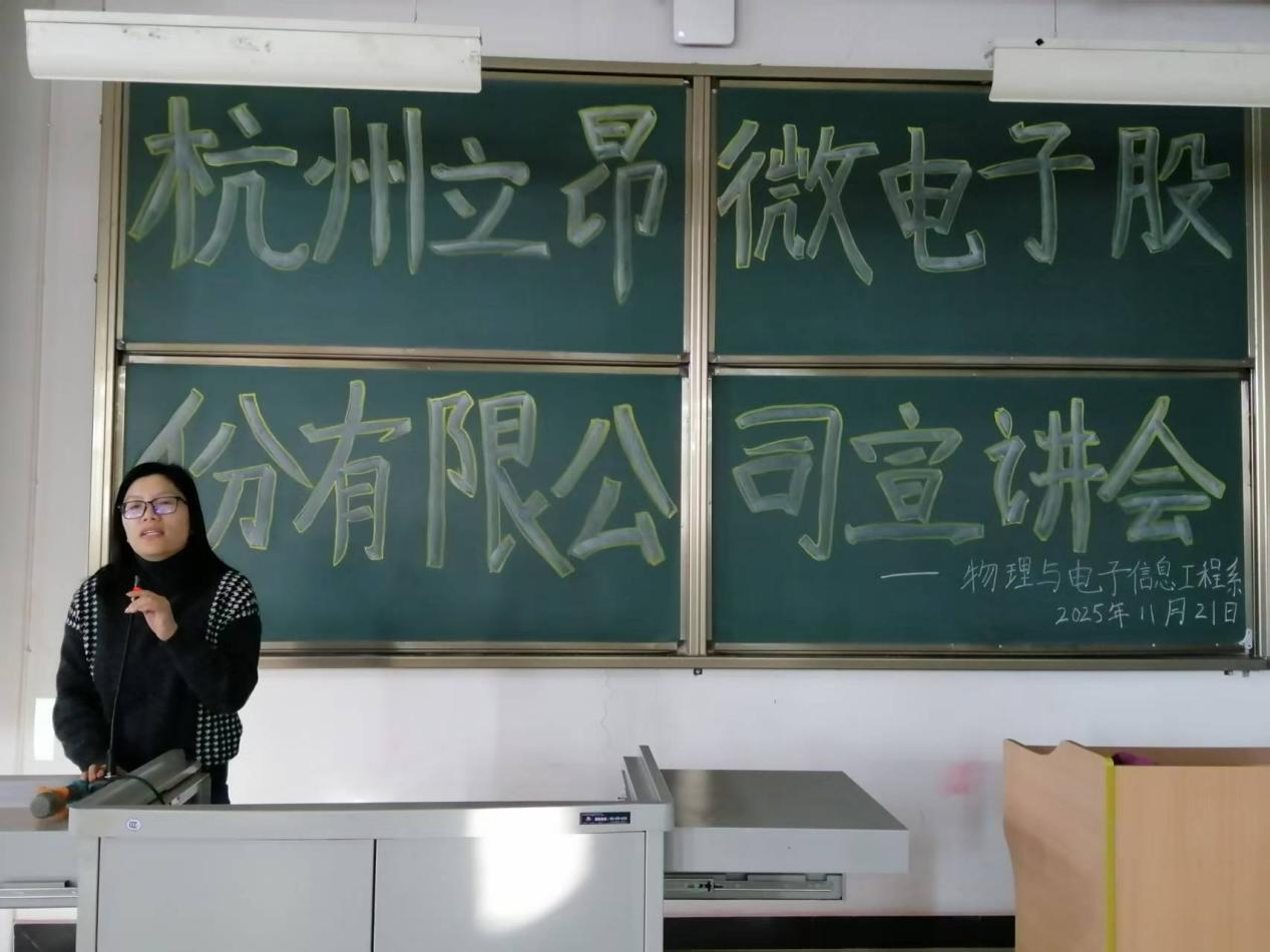 为精准链接半导体行业优质人才资源,助力高校学子锚定产业就业方向,同时为企业核心业务发展储备骨干力量,11月21日上午10:00-12:00,杭州立昂微电子股份有限公司在弘博楼B-阶401举办了吕梁学院物理与电子信息工程系校园专场宣讲会。宣讲会由企业招聘经理鲍经理主讲,物电系主任王丽华、电子信息工程专业负责人张辰锐、就业专员张立斌出席了会议。宣讲会吸引了近200名应届毕业生到场参与,现场收取简历数十份,初步达成录用意向8人。