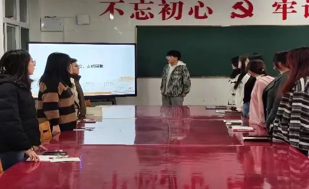 3月11日晚,在弘博楼A408举行了“团校培训”开班仪式。在开班仪式上,大家齐唱国歌。系学生分团委副书记王文泽带同学们了解了什么是“团校培训”。“团校培训”是青年学生骨干提升思想政治素质和创新能力的大课堂,举办团校对帮助广大青年学生深刻领会马克思主义的丰富内涵和精神实质具有重要意义。